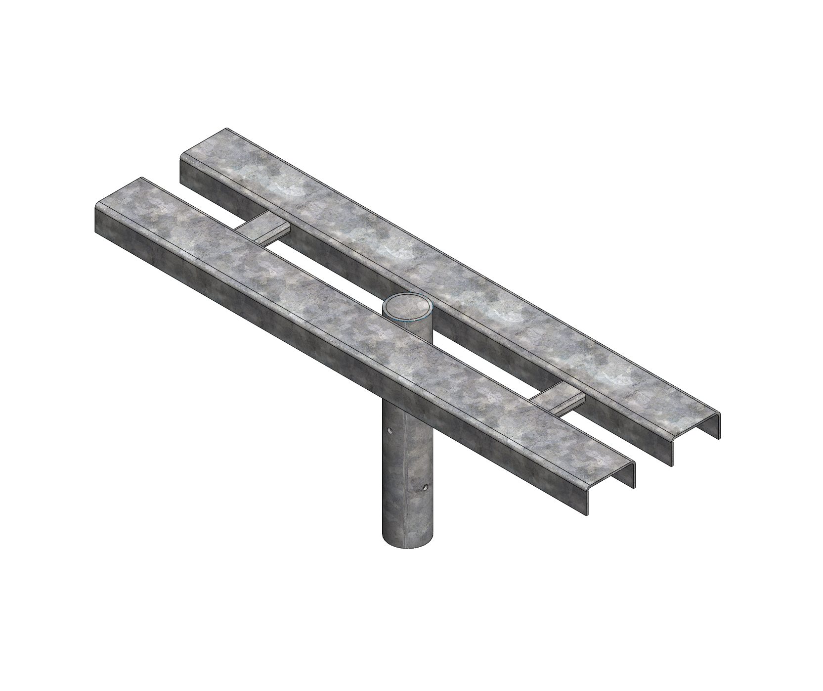 Cruceta doble horizontal de 2m para montaje de luminarias en postes. Fabricado en acero galvanizado en caliente.