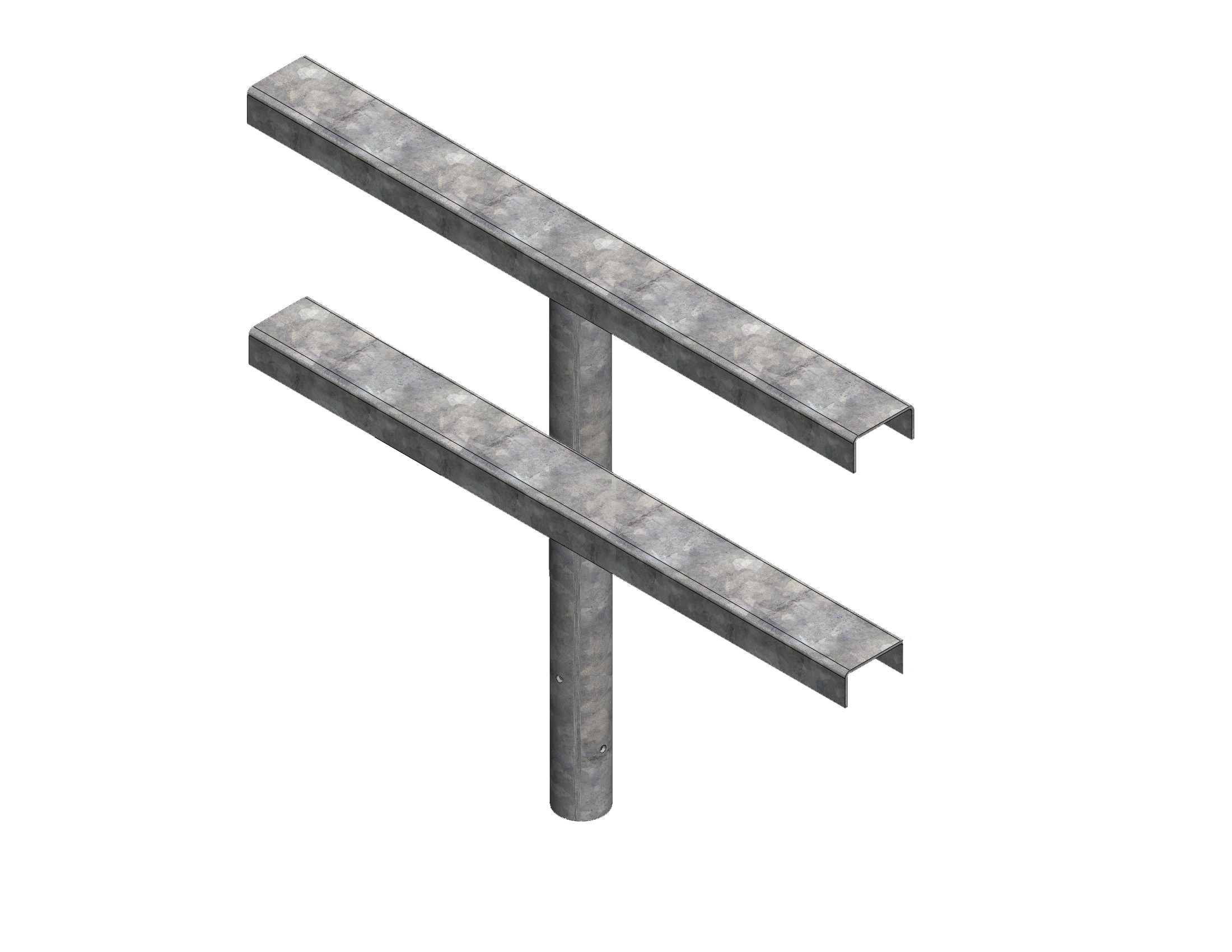 Cruceta doble paralelas de 1m para montaje de luminarias en postes. Fabricado en acero galvanizado en caliente.