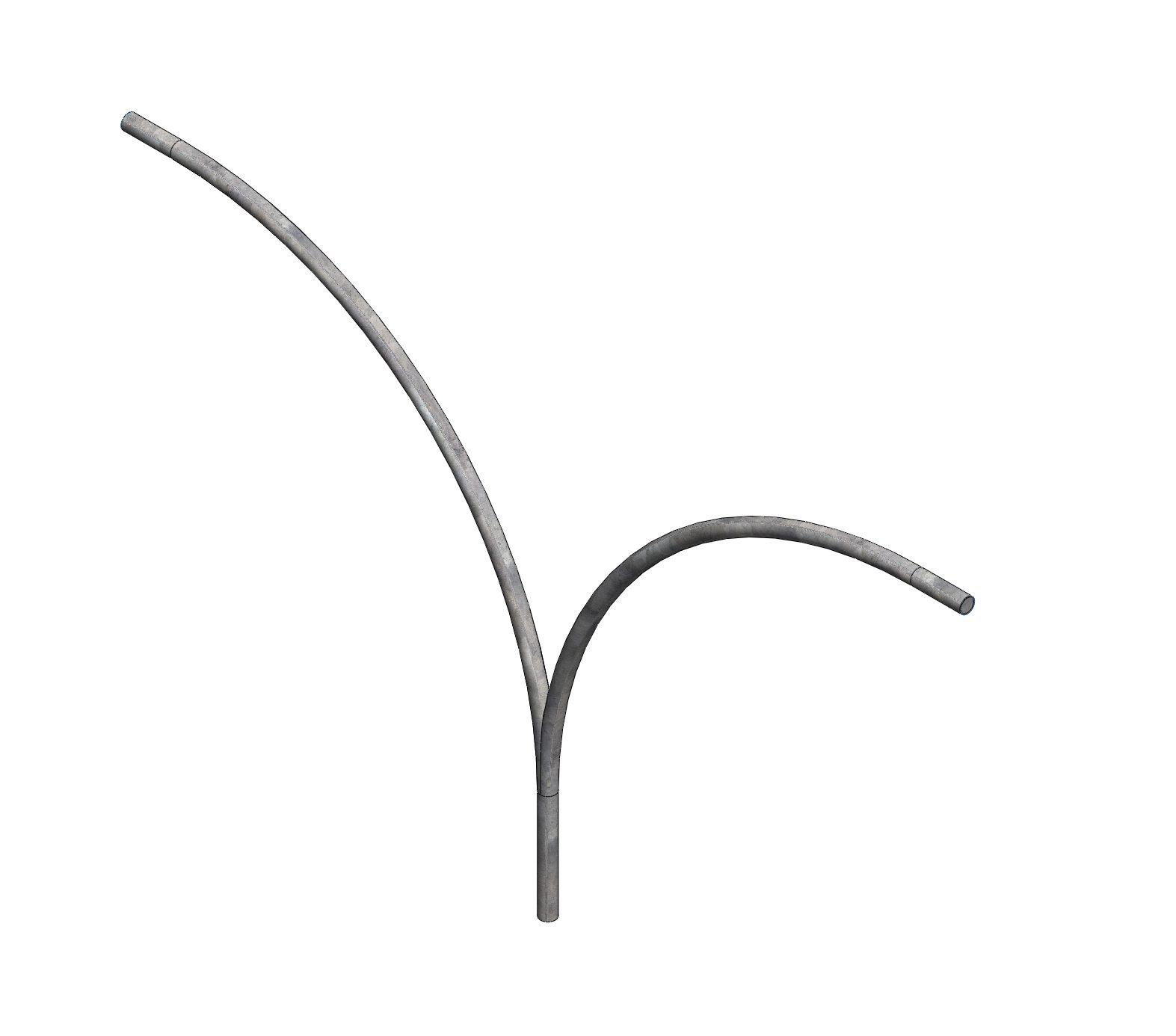 Gancho curvo doble con radio de 2000 mm para montaje de 2 luminarias en postes. Fabricado en acero galvanizado en caliente.